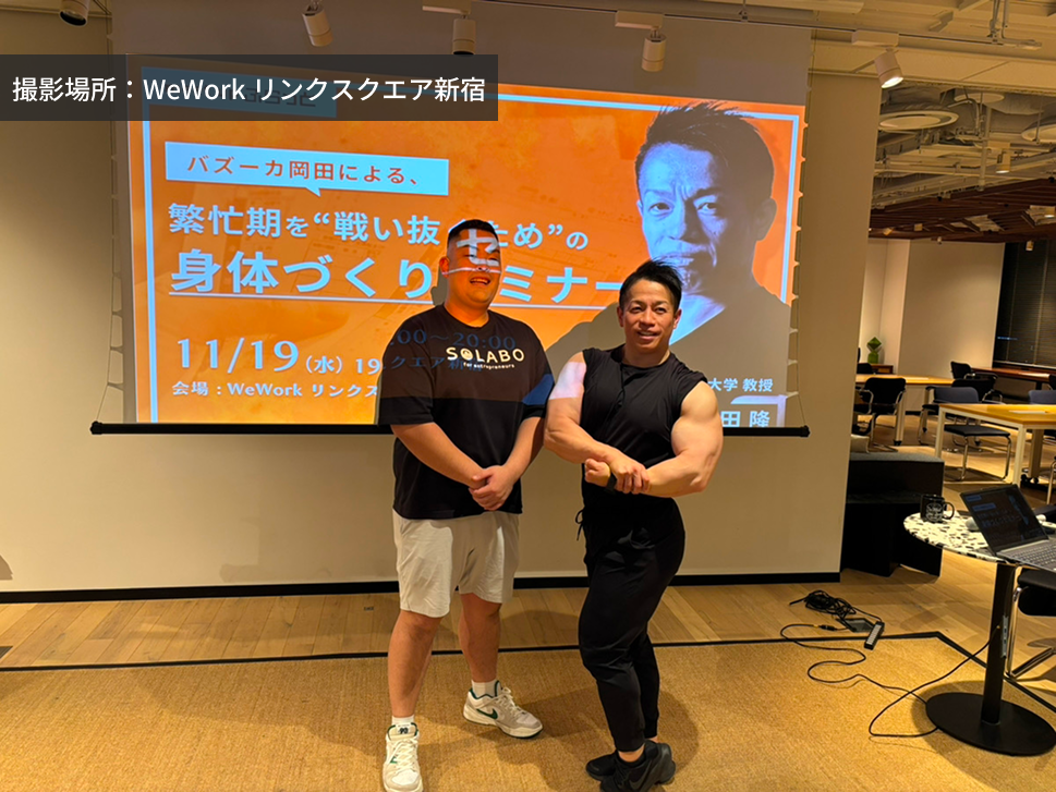 2025年11月19日(水)にWeWork リンクスクエア新宿にて、「バズーカ岡田による、繁忙期を戦い抜くための身体づくりセミナー」を開催いたしました!