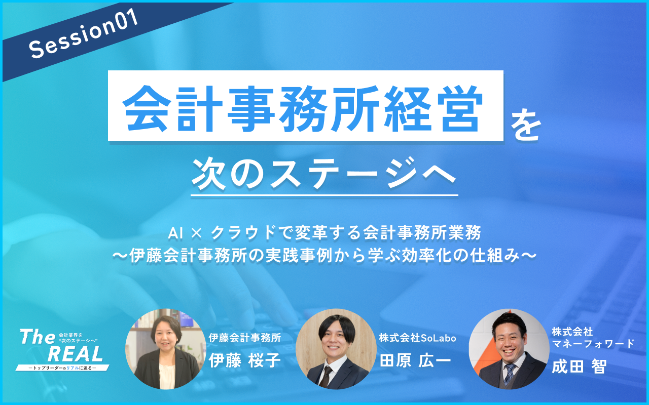 登壇者:伊藤会計事務所 伊藤 桜子先生 × 株式会社マネーフォワード 成田 智様 × 株式会社SoLabo 田原 広一